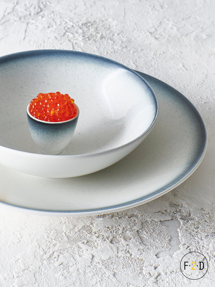 Inspired by distant lands by the sea, this porcelain tableware collection stands out with its unique speckled design, delicately added to the edges. The reactive glaze ensures no two items are the same, which adds a playful diversity to the table.