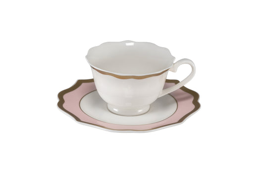 Pink coffee saucer with gold rims - New bone china Ø13 h 1 cm