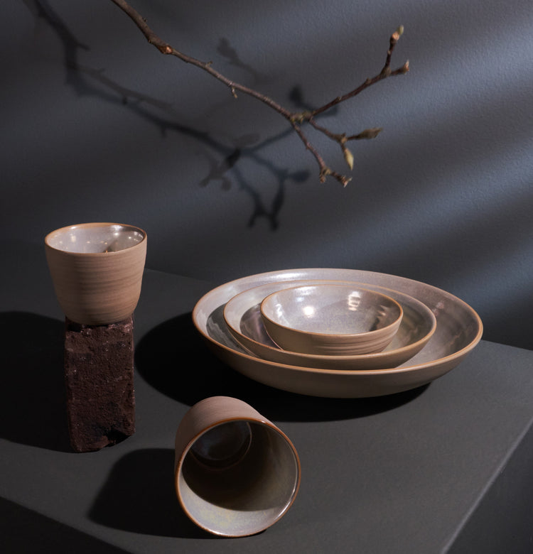 The calm color palette of Ostra Pearl harmoniously combines the reactive glossy glaze