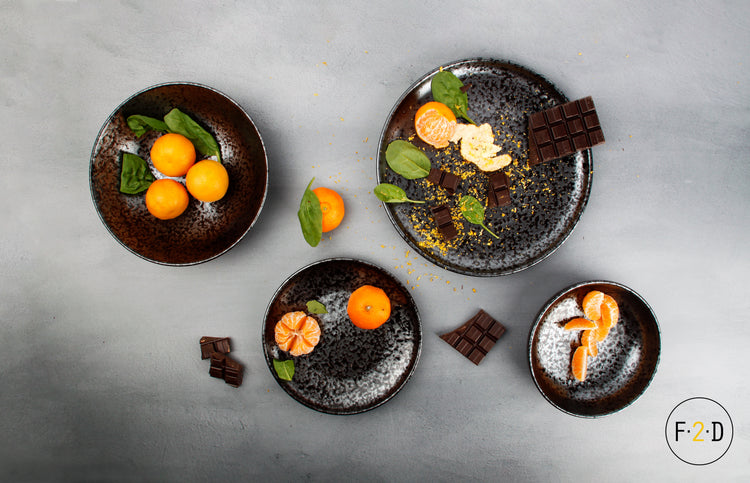 Its innovative metallic look is what makes the Oxido collection so special. Powerful black tones alternate with a glimpse of metallic grey, giving the collection a luxurious appearance.The strong robust design accentuates the durability. Coupled with great functionality, this porcelain beauty is perfect for intense use. Thanks to the finish with reactive glazes, every product is unique in its details.