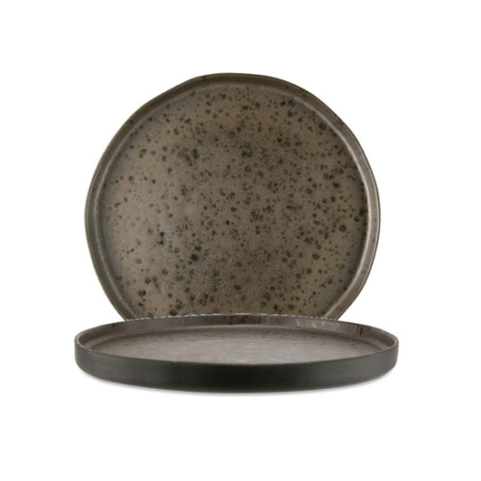 Brown pasta bowl with rusty reactive dots 28.5cm