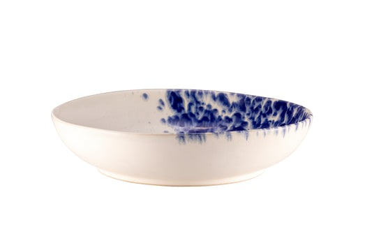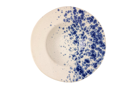 White pasta bowl with blue reactive dots Ø28,5 cm